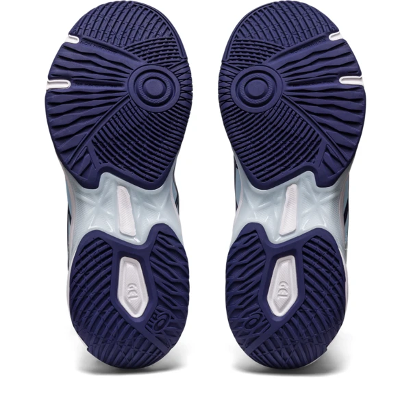A wrap-up outsole and outrigger is a functional support component during side-to-side movements. In contrast, the heel wrap-up expands the contact area during the landing phase of your stride to help generate a smoother landing. Lastly, the flexible grooves in the outsole are complemented with a side grip design that improves flexibility on the court.