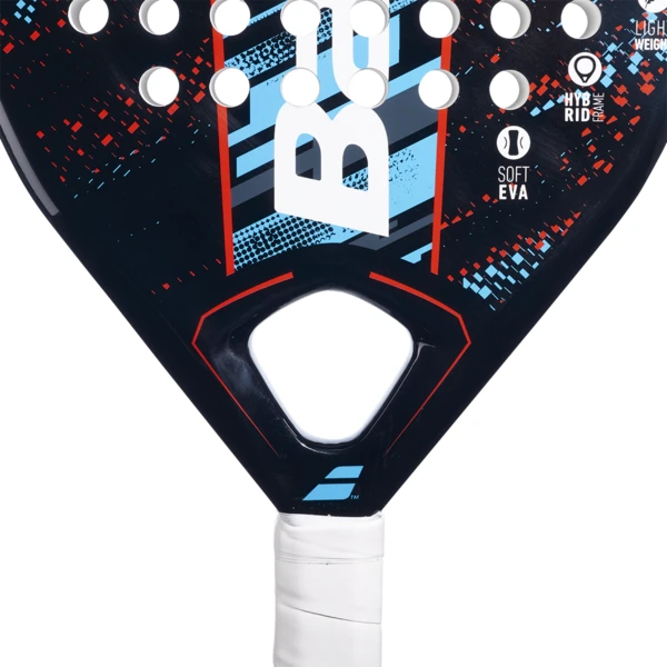 The Babolat Reflex padel racket is a great choice for all-round players looking to improve their game. With its diamond head shape and head heavy balance this rackets allows you to hit with great power on your over head shots, but still move quickly around the court frame a lighter frame weight. Hybrid frame technology offers the durability of carbon and the flexibility of fibreglass.
