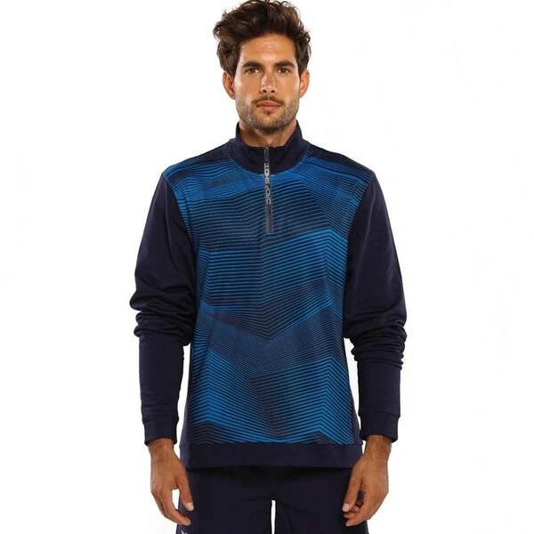 The Drop Shot Rush sweatshirt, designed for the most technical players and looking for maximum performance combined with the best aesthetic elegance. From the Juan Martín Díaz Collection. Drop Shot Rush Sweatshirt protects players against the elements but without compromising on comfort and performance thanks to the Cotton Elastane Brushed, which retains heat. This model incorporates two pioneering systems. The Dry System Keepcool, designed to wick sweat and moisture always keeping the body in perfect condition, and the Elasticity System, which gives extra elasticity to the sweatshirt, allowing for free movement.