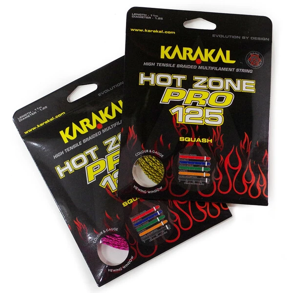 The Karakal Hot Zone Pro 125 is a Multifilament Pro performance Squash String with a Co-Polymer inner core wrapped in high tensile Co Polymer Braided layers. A textured nano coating finish which enhances the Feel and Durability of the string, gives the Hot Zone Pro 125 superior Power, while remaining consistent and controlled for those touch and cut shots that win games. The Karakal Hot Zone Pro 125 Squash String deliveres Pro performance for a high level controlled game. The string of choice for High Performance and Pro player. Karakal Nano Technology is a revolution in String manufacturing. Adding ‘nano’ sized particles at a molecular level changes the cell construction and instantly improves the feel and durability of the strings.