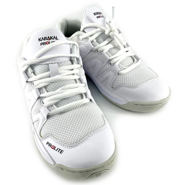 The improved Karakal Prolite shoes are now fitted with a Shock absorbing Gel Insole as standard. The Gel covers the heel and midsole to absorb impact and there is additional padding in the heel and ball of the foot for comfort. The top has a textured surface to cut down on foot movement and breathing holes to keep your foot cool.