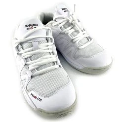 The Karakal Prolite is a superlite court shoe which offers exceptional lateral stability due to the heel and forefoot band and lace loop system which stops the foot rolling on sideways movement.