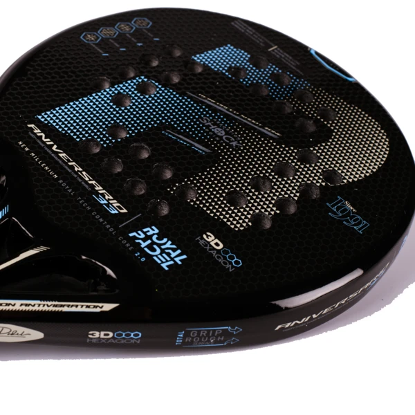 Surface: New for 2023 3D Hex Weave. The anniversary model plan is made of 0.5 aluminised glass fabric increasing the durability of the racket. Core is 100% carbon tissue.