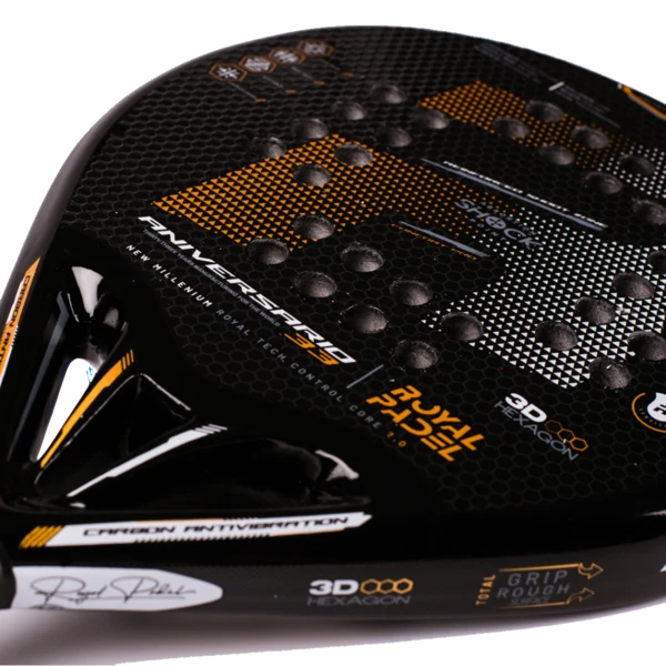 The Royal Padel Anniversary Poly padel racket is ideal for the advacned players looking for an arm-friendly racket. It has increased hitting durability and improved shock absorption.