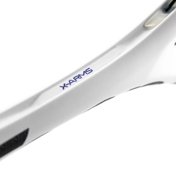 The X-Top range is equipped with the same technologies that made its predecessor – the Airshaft range – so popular. The Airshaft section provides a sharpened frame geometry for a more dynamic response and greater swing speed. The shaft design is strengthened through X-Arms technology for greater racket stability and improving aerodynamics whilst adding minimal weight. There are 12 enlarged string holes at specific locations on the frame (3, 9 and 12 o’clock) to encourage the movement of the strings, improving the tolerance of the racket for an enhanced sweet spot, allowing the player to generate more power, and increasing the effect/cut the player can put on the ball.